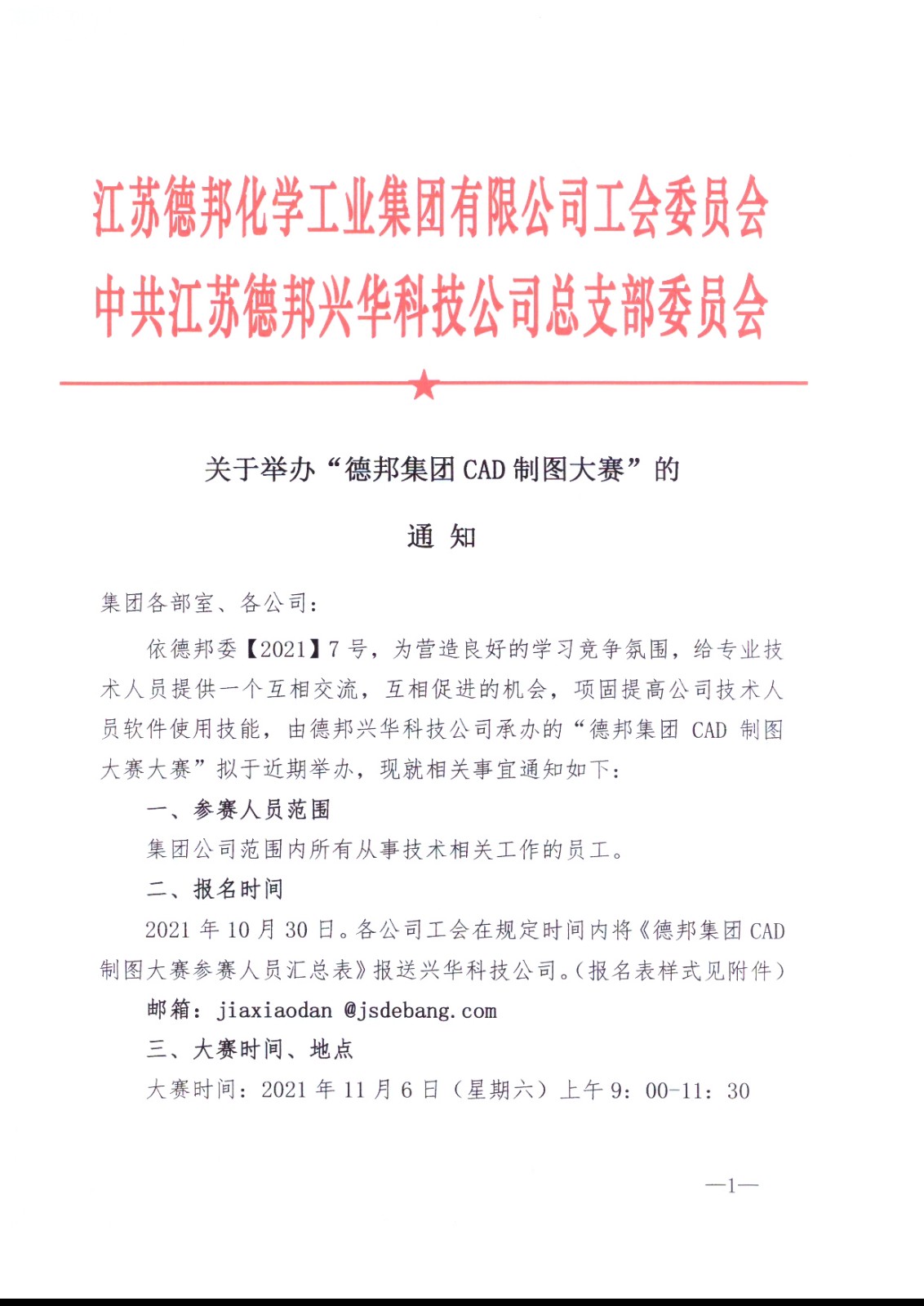 德邦興華科技公司關于舉辦德邦集團CAD制圖大賽的通知