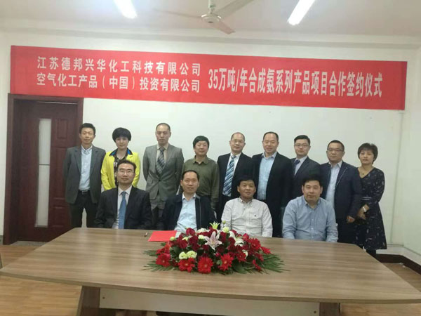 2018年10月11日下午,江蘇德邦興華化工科技有限公司與美國空氣化工產(chǎn)品(中國)投資有限公司關(guān)于搬遷改造項目合作簽約儀式在陽森公司會議室隆重舉行。江蘇德邦化工集團(tuán)董事長趙祥海、總裁助理高美霞,江蘇德邦興華化工科技有限公司總經(jīng)理孫成亮、副總經(jīng)理潘杭軍等領(lǐng)導(dǎo);美國空氣化工產(chǎn)品(中國)投資有限公司顧效冬總監(jiān)、諶業(yè)文總監(jiān)、王磊經(jīng)理、尹烈經(jīng)理、曾凡林經(jīng)理、閔淑玲經(jīng)理等領(lǐng)導(dǎo);徐圩新區(qū)管委會江行洲書記、重大辦鄭彬主任、投資促進(jìn)局陶亞局長等領(lǐng)導(dǎo)出席簽約儀式。