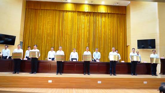 1012日下午,2022淮南100強企業(yè)發(fā)布會在山南政務(wù)大廳舉行。淮南市委書記任澤鋒出席并為代表企業(yè)授牌。市委常委、常務(wù)副市長孫良鴻主持,市領(lǐng)導(dǎo)宋立敏、沈斌、李國利、李大松及2022淮南100強榜單企業(yè)代表出席。淮南市企業(yè)(企業(yè)家)聯(lián)合會會長韓家章致發(fā)布辭。安徽德邦公司黨總支書記劉默海參加此次會議并上臺領(lǐng)取獎牌。